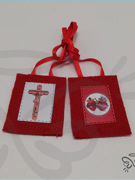 El color marrón significa la vida de entrega y de sacrificio de Jesús. El Sagrado Corazón de Jesús, dijo que este Escapulario y su color representan toda su vida expiatoria en la tierra. La Cruz representa el máximo Amor de Dios y a la que todo apóstol de Jesús y María debe aspirar unirse; blanca porque significa su Triunfo, con el borde celeste que representa la compañía de la Madre Bendita en la vida de Nuestro Señor. Atrás está el Corazón Doloroso e Inmaculado de la Santísima Madre que se une al Sagrado Corazón de su Hijo por medio de las cintas. Sus tres rosas representan los dones y la espiritualidad del Corazón Doloroso e Inmaculado de María que deben vivir los apóstoles de los últimos tiempos como son; la oración, el sacrificio y la penitencia.